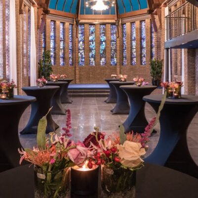 De flexibele indeling, de regieruimte, eigen garderobe en voldoende Wi-Fi vermogen maakt de Kapelzaal uitermate geschikt voor zowel zakelijke- als feestelijke bijeenkomsten. Denk hierbij aan een walking diner, netwerkdiner, receptie, diploma-uitreiking, jubilea en zelfs bruiloften.